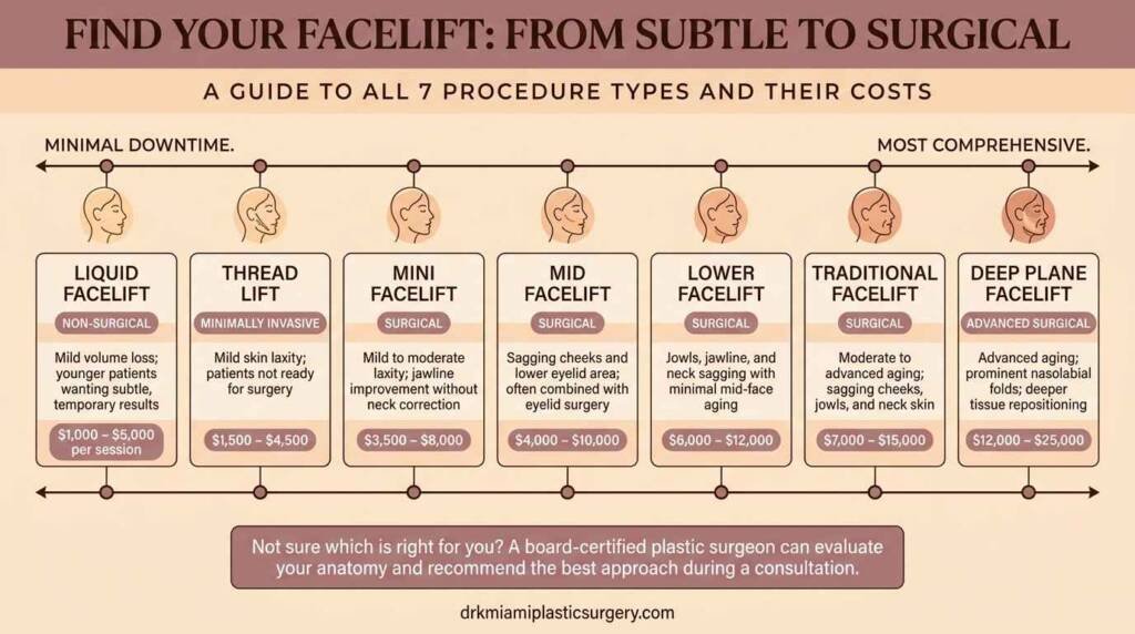 In 2024, facelift costs in Miami vary widely depending on the specific procedure. Mini facelifts start around $5,500, while full facelifts can exceed $20,000.
